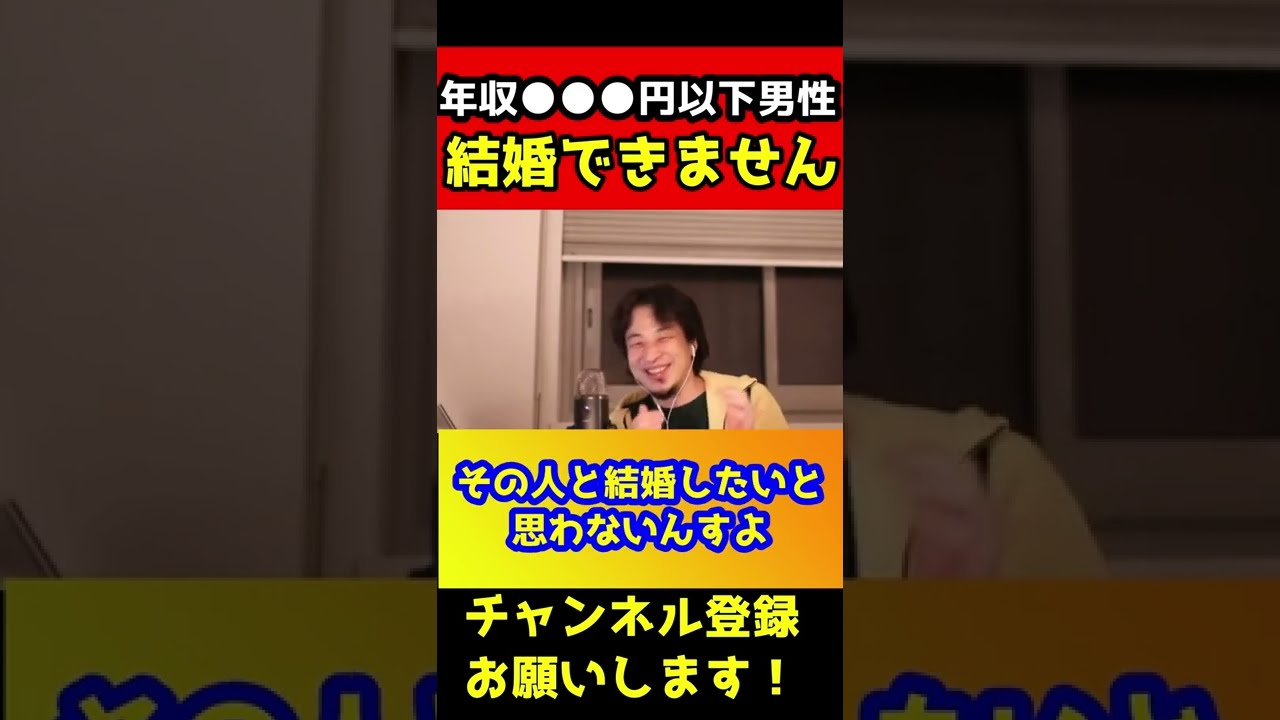 年収300万以下の人は結婚できません。ゴミムシ以下で見向きもされず人権ないです。【ひろゆき/結婚できない年収】#shorts