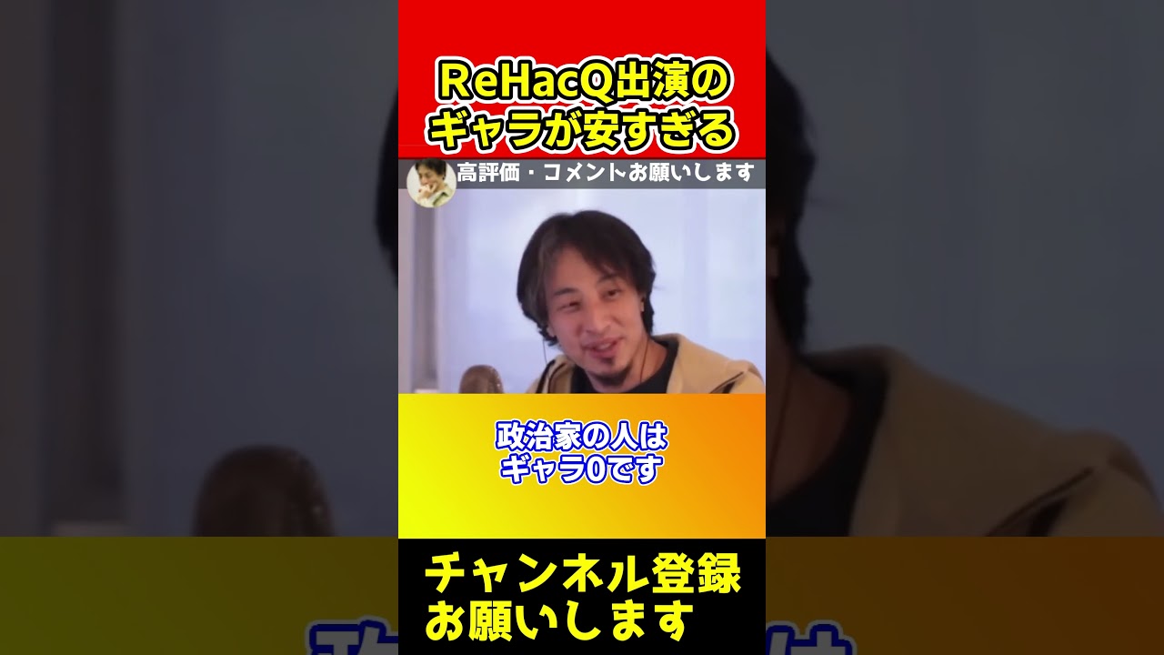ひろゆきのReHacQ出演のギャラが安すぎるW【西村博之】#shorts