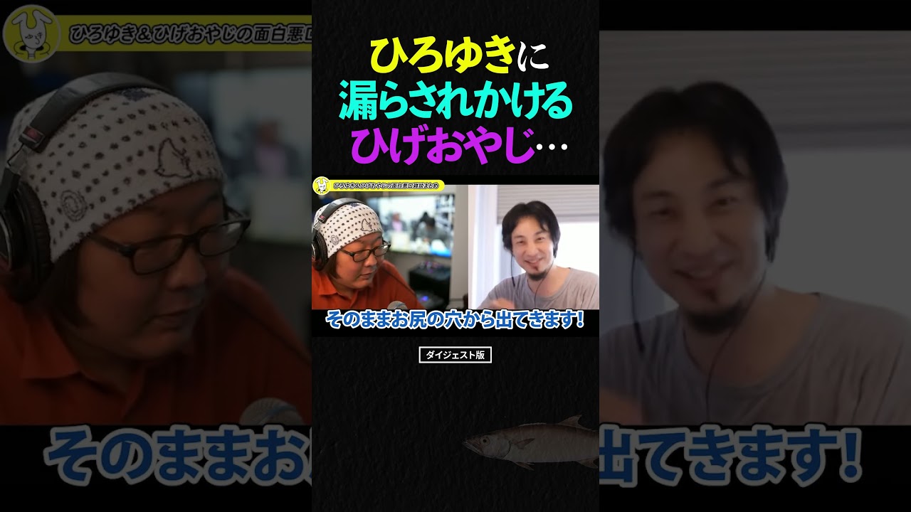 ひろゆきがひげおやじの自宅で漏らそうとする場面の切り抜きショート動画です。