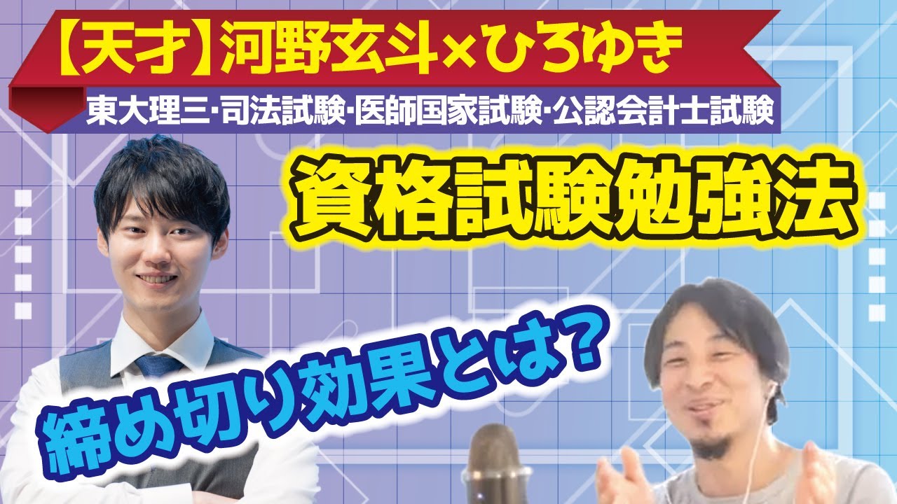 資格試験勉強法「締め切り効果」とは?【ひろゆき×河野玄斗】司法試験&医師国家試験&公認会計士 #切り抜き #河野玄斗 #東大理三 #受験 #資格 #hiroyuki #ReHacQ #リハック
