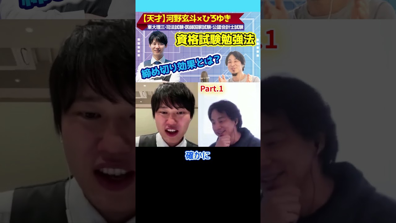資格試験勉強法「締め切り効果」とは?その1【ひろゆき×河野玄斗】司法試験&医師国家試験&公認会計士 #切り抜き #河野玄斗 #東大理三 #受験 #資格 #hiroyuki #ReHacQ #リハック