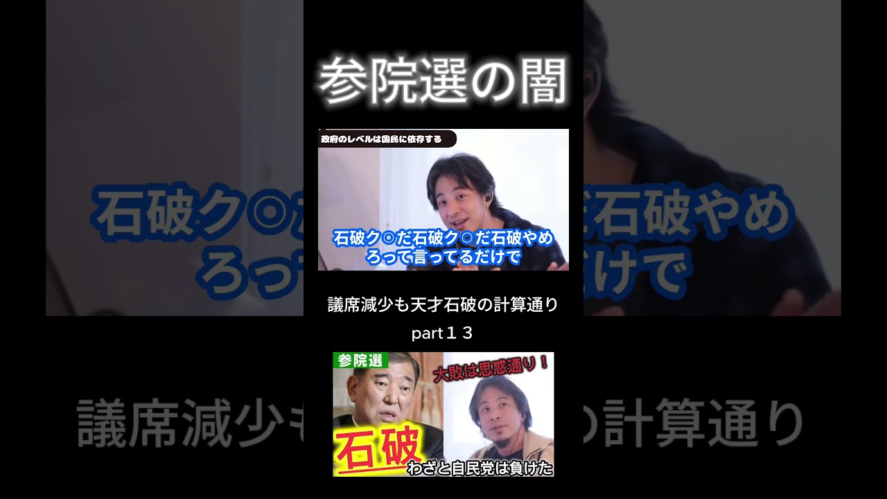 【自民党大敗】議席減少も石破総裁の思惑通り。TVでも匂わせた〇〇を狙った参院選挙をひろゆきが解説。【ひろゆき切り抜き】part13 #shorts #ひろゆき #切り抜き