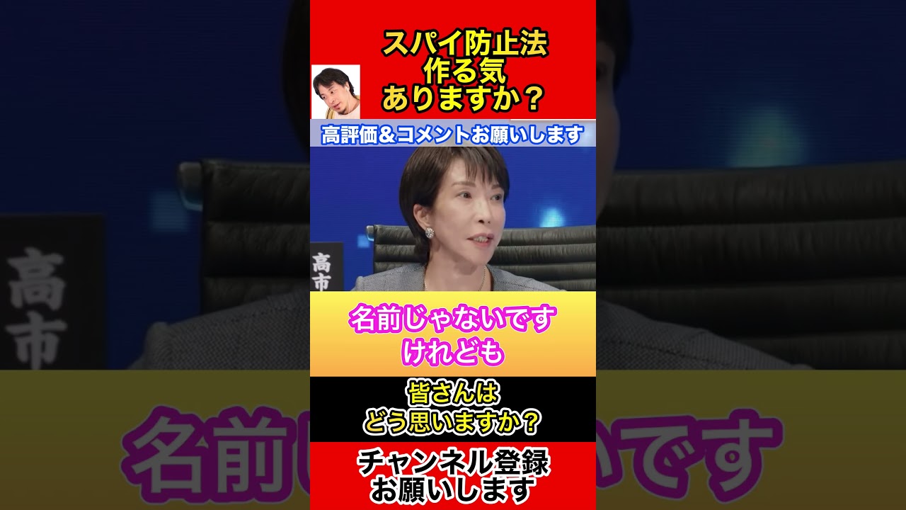 スパイ防止法作る気はありますか?【ひろゆき切り抜き】#Shorts#ひろゆき#切り抜き#スパイ防止法#高市早苗