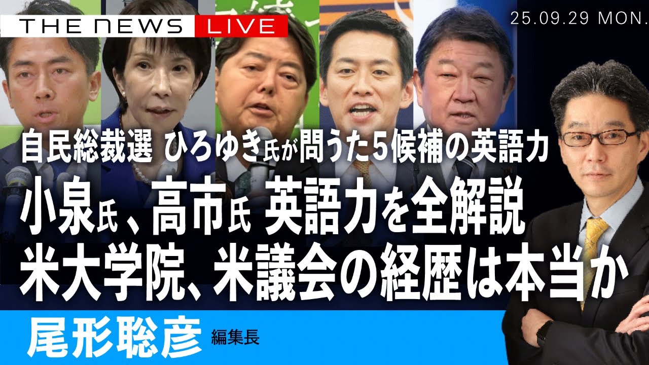 ひろゆき氏が晒した小泉氏と高市氏の英語力、全解説/米大学院、米議会の経歴は本当か?(尾形聡彦)【9/29(月) 20:00~ ライブ】