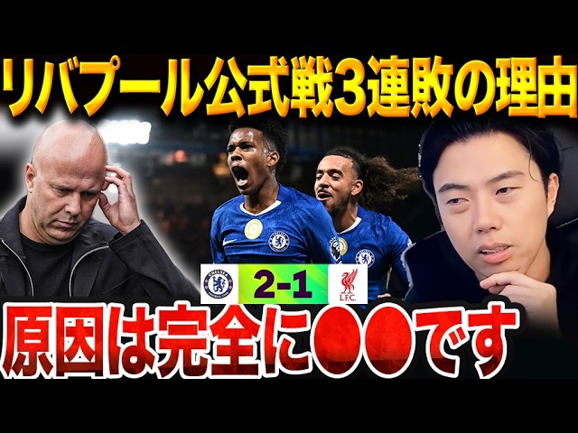 プレミアリーグ第7節、チェルシーがリバプールを2-1で撃破。18歳の新星エステバンが後半アディショナルタイムに決勝弾を決め、スタンフォード・ブリッジを沸かせました。一方のリバプールはガラタサライ戦、クリスタル・パレス戦に続く公式戦3連敗。遠藤航は終盤から投入されるも、失点シーンではククレジャのマークにつき切れず悔しい結果に。カイセドの圧巻ゴール、ショボスライやフラーフェンベルフの役割、そして遠藤航の起用法など、リバプールの構造的な問題を戦術的視点で徹底分析します。