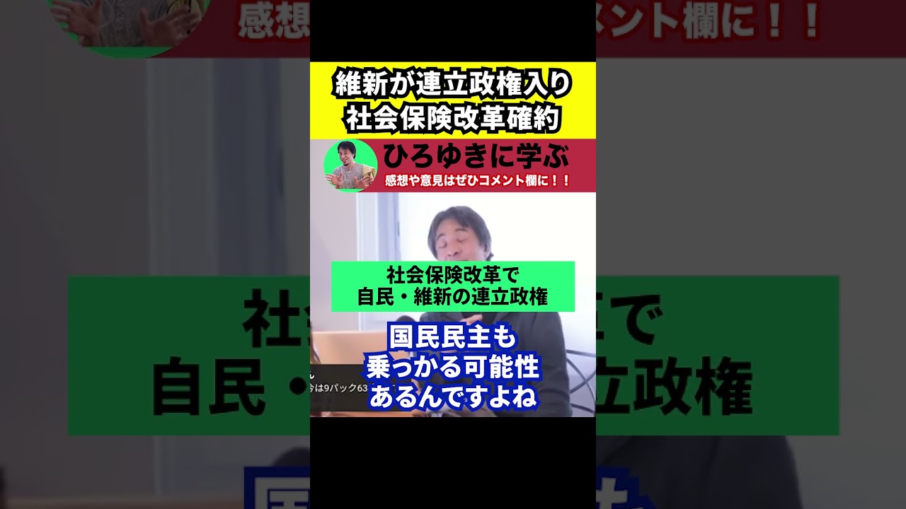 【ひろゆき】自民党と維新の連立政権が誕生へ【切り抜き/社会保険改革】