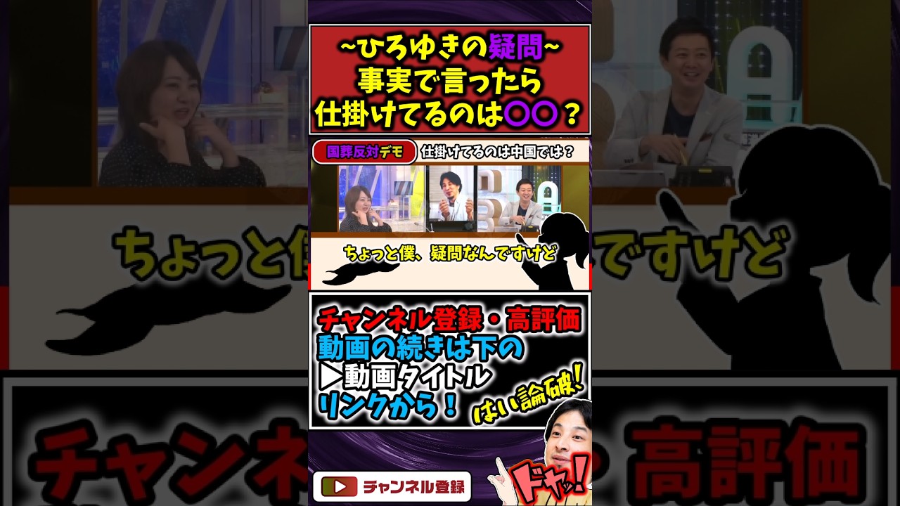 「戦争を仕掛けているのは○○」?ひろゆきの素朴な疑問 #国葬 #洞口朋子 #中国 #ひろゆき #ひろゆき切り抜き 2025年10月19日 okutakushi 0 Comments コメントを残す コメントをキャンセルメールアドレスが公開されることはありません。 ※ が付いている欄は必須項目ですコメント ※ 名前 ※ メール ※ サイト 次回のコメントで使用するためブラウザーに自分の名前、メールアドレス、サイトを保存する。 投稿ナビゲーション Previous: 高市政権誕生か?反自民野党連合か?#井川意高#大王製紙#佐藤尊徳#立憲民主党#維新#公明党#国民民主党#玉木雄一郎#高市早苗#岸田文雄#見城徹#トランプ#財務省#小泉進次郎#石破茂#安倍総理#宮沢洋一Next: 勉強とスポーツは両立できますか? #ひろゆき #切り抜き #ひろゆき切り抜き #勉強 #shorts