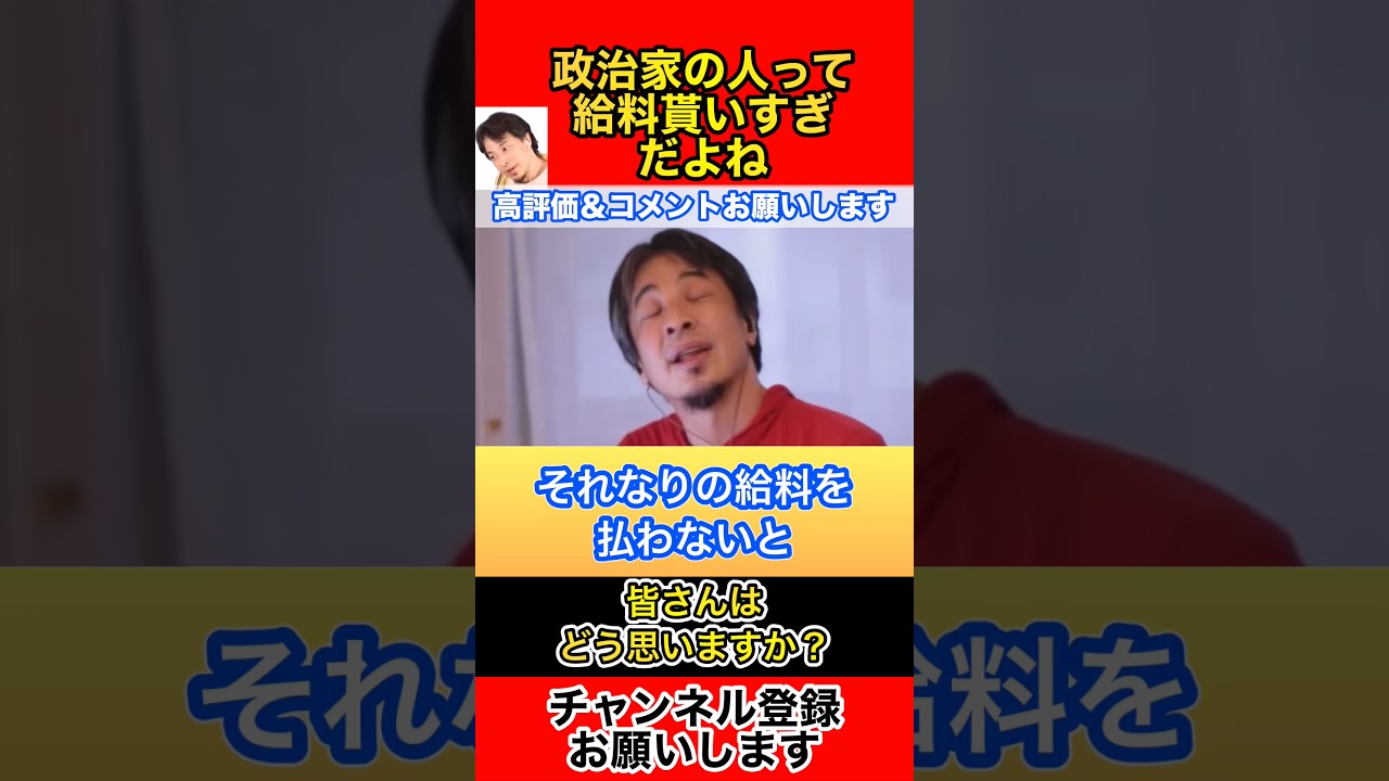 政治家って給料貰いすぎだよね【ひろゆき切り抜き】#Shorts#ひろゆき#切り抜き#政治家の給料