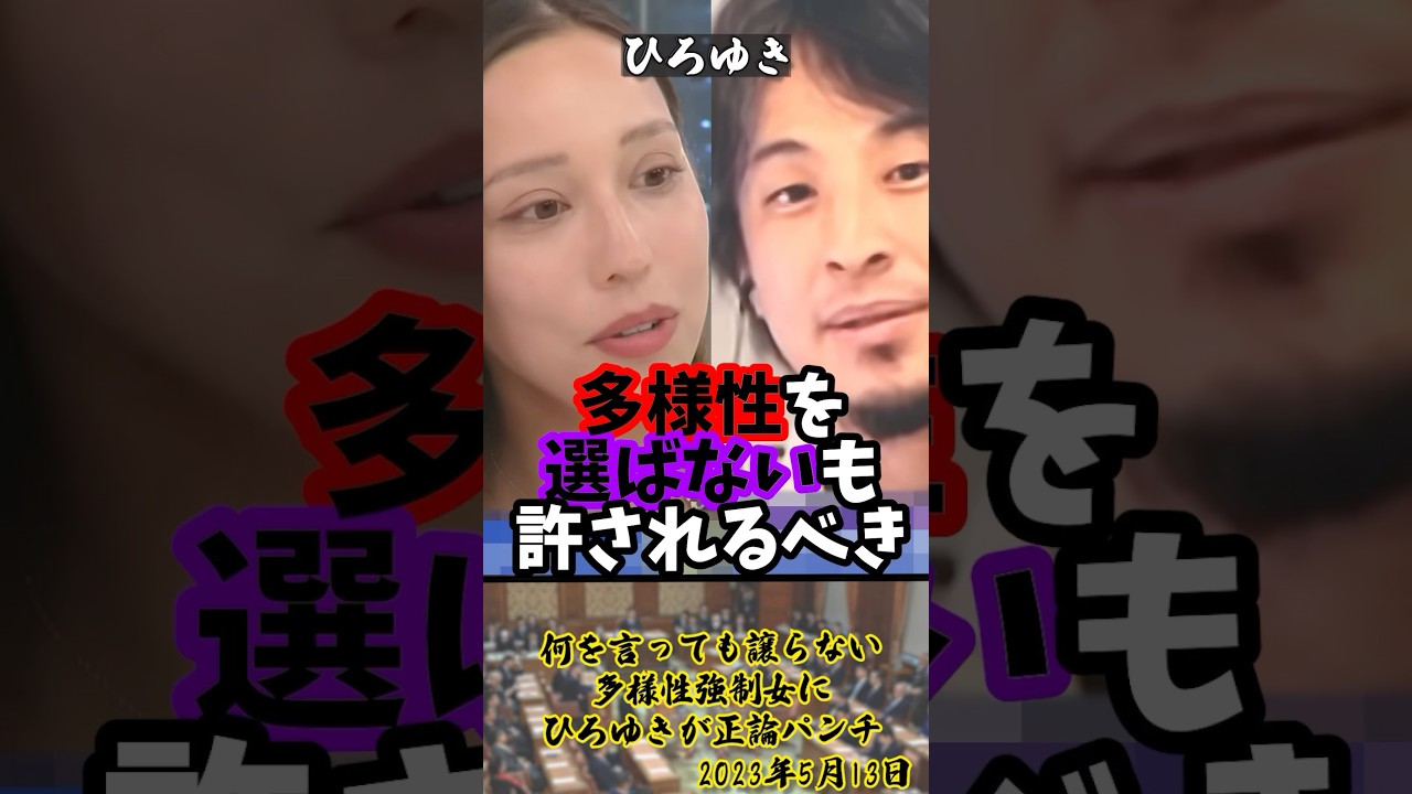 「マイノリティ採用義務化の法律は作るべきではない」何を言っても譲らない多様性強制女にひろゆきが正論パンチ【2023年5月13日】#shorts#ひろゆき#多様性#マイノリティ#法律