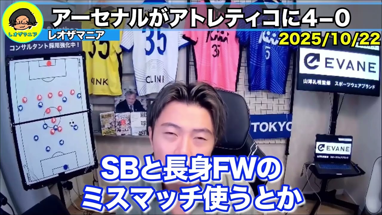 一方で、アトレティコの攻守バランスの崩壊、ヒメネス起点のビルドアップ限界、そしてシメオネが抱える“理想と現実”の葛藤を整理。ポゼッション志向とパッション主義の狭間で揺れる指導哲学、構造を整えられる参謀不在の現実など、アーセナルとの質的ギャップを多角的に検証します。
