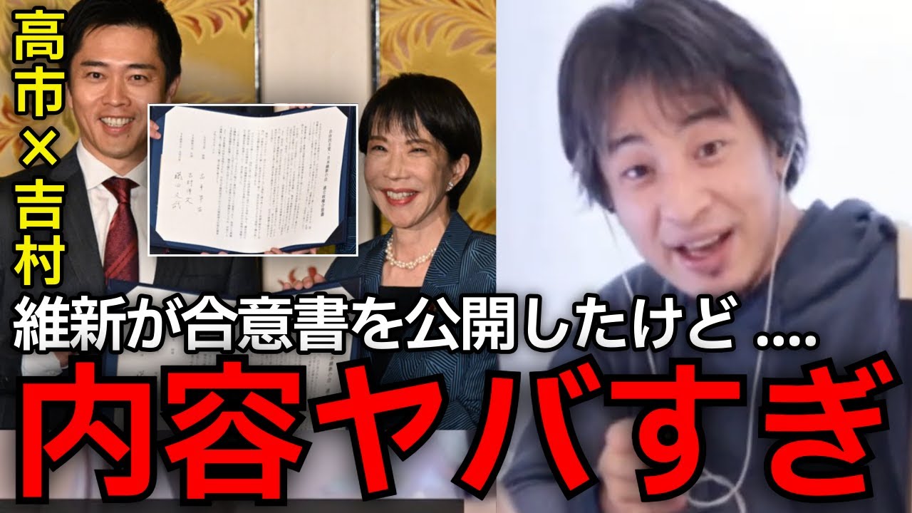 【合意書の中身】この話やばすぎ….首相高市早苗と維新代表の吉村洋文が交わした連立合意書。この中身知らない人は必ず見てください。【ひろゆき切り抜き】