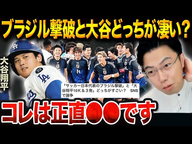 日本代表のブラジル撃破と、大谷翔平の歴史的快挙。SNS上では「どちらがより凄いのか?」という論争が巻き起こりました。本動画では、サッカーが日本社会で“野球並みに注目される”ための条件を戦術・文化・経済の3側面から深掘り。さらに、「大谷翔平級のサッカー選手は日本から生まれるのか」「野球界が持つ仕組みの強さ」「栗山英樹監督と森保一監督の決定的な違い」など、レオザ独自の視点で徹底分析します。