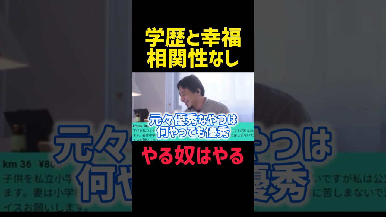 【ひろゆき】学歴と幸せは全く関係なし‼️【切り抜き 受験 就活 大学生 勉強 雑学 モチベーション やる気 努力 お金 副業 起業 名言