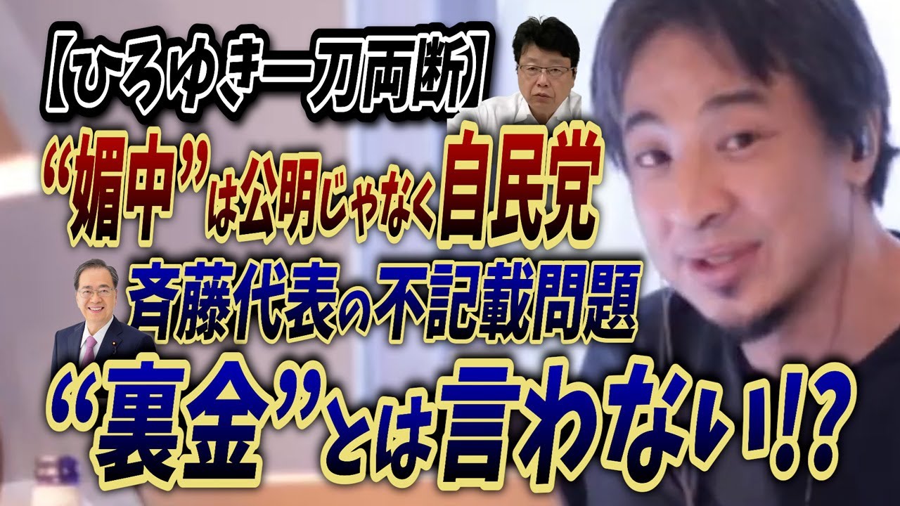 #ひろゆき #政治ニュース #公明党 #自民党 #斉藤鉄夫 #裏金 #媚中 #論破 #臨時国会 #秋元司