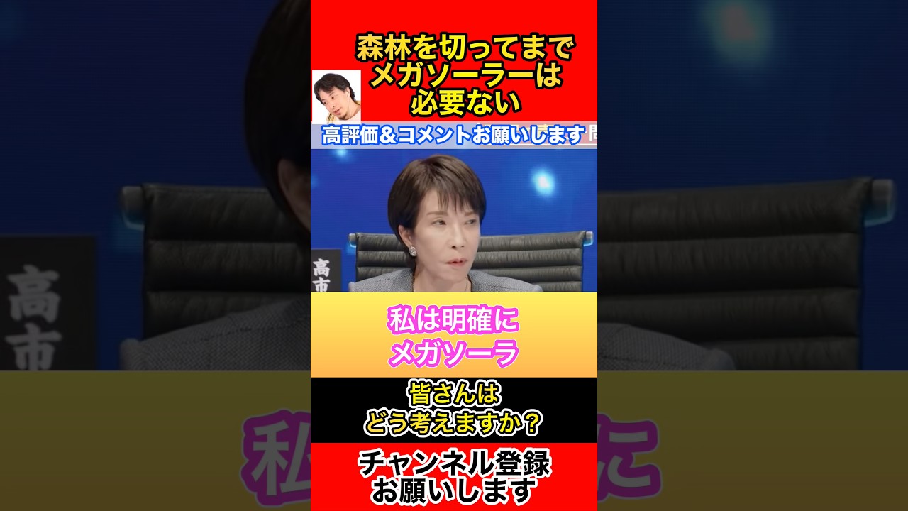 森林を切ってまでメガソーラーは必要ない!【ひろゆき切り抜き】#Shorts#ひろゆき#切り抜き#高市早苗#メガソーラー