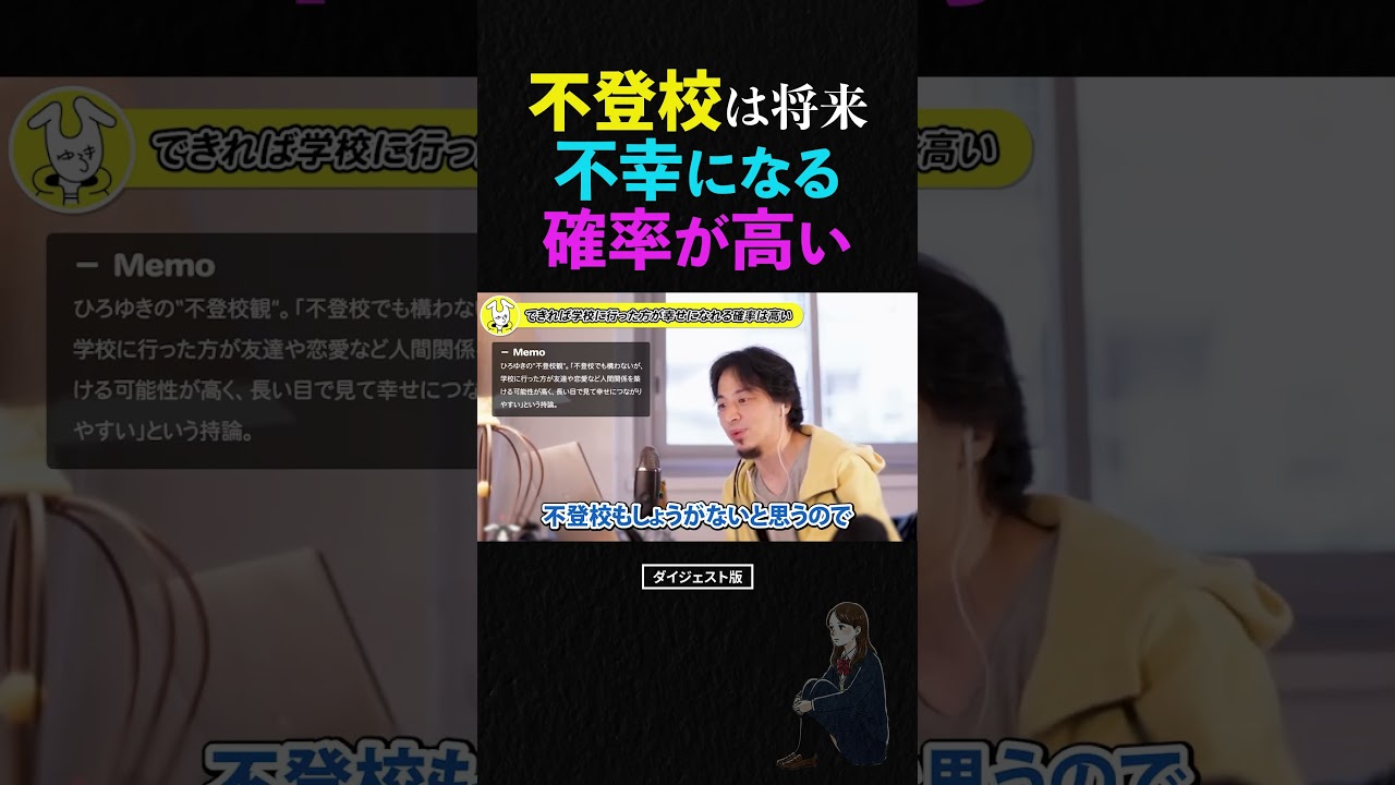 【ひろゆき】不登校は不幸になる確率が高い理由【学校 友達 幸せ ひろゆき切り抜き 論破】 #ひろゆき #ひろゆき切り抜き #不登校 #shorts