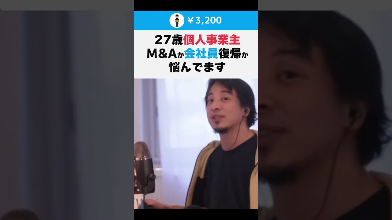 【ひろゆき】27歳個人事業主 M&Aか会社員復帰か悩んでます #shorts