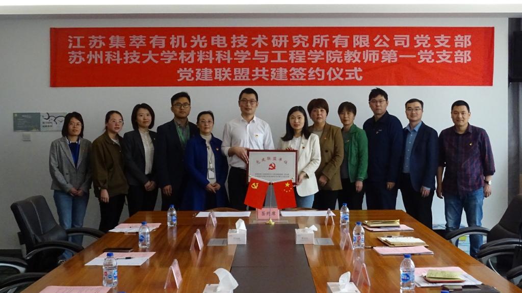 4月27日,伟德国际victor·1946源自教师第一党支部与集萃有机光电所党支部在江苏集萃有机光电技术研究所有限公司举行了“光电转化材料研发、测试共享平台”党建联盟签约仪式。学院党总支书记和洁、党总支副书记/副院长李永丹、副院长叶常青、教师第一支部党员参加了此次活动。