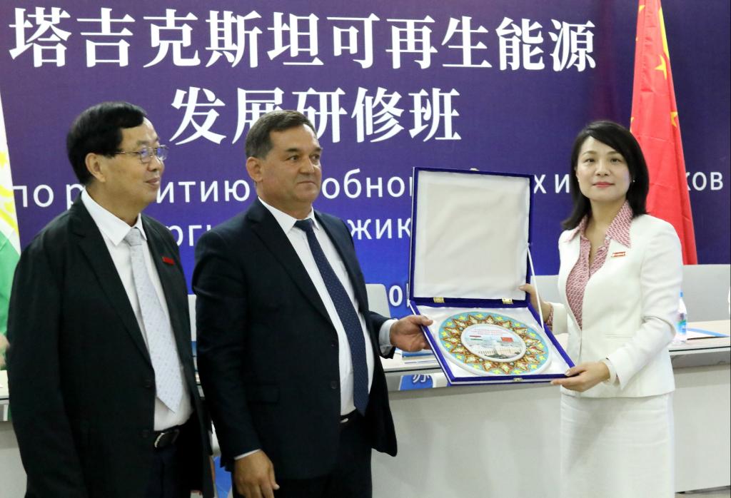 来自塔吉克斯坦共和国博赫塔尔市政府的VALIZODA QUBRON市长代表全体学员发言,对中国商务部和我校承办培训班表示了衷心的感谢,并表示将利用这个机会共同为能源基础设施可持续发展做出贡献,并期待为更清洁、更可持续的可再生能源未来共同努力。最后,塔方赠与我校代表中-塔双方友谊的礼物。
