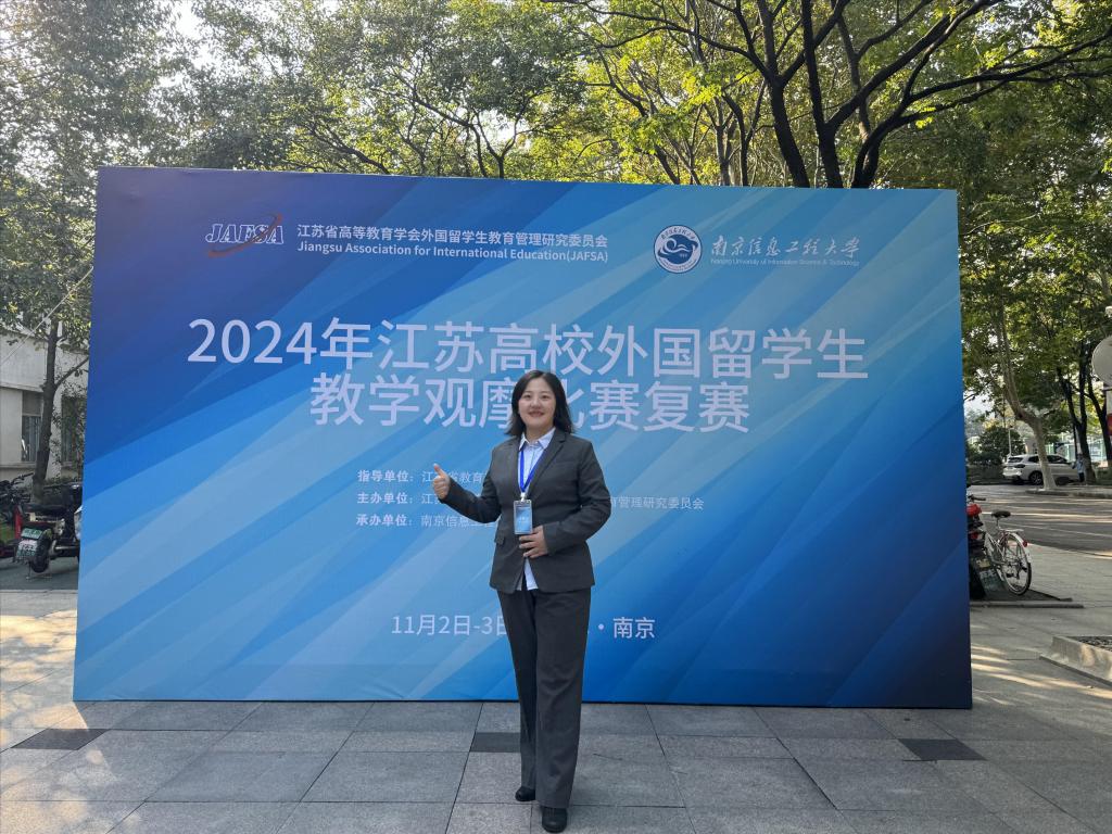 2024年11月3日,江苏高校外国留学生教学观摩比赛复赛在南京信息工程大学举行,本次复赛共有64所高校130多名教师参加。我院青年教师李琳参赛,讲授《Organic Optoelectronic Materials and Devices》课程,获三等奖。