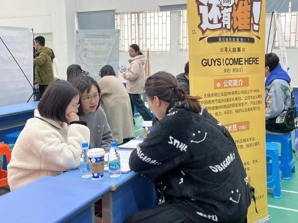 毕业生们手持简历,积极主动询问岗位需求和职业发展等信息。学院领导与用人单位深入交流,咨询招聘人数、薪资待遇、培养体系等关键问题,并积极向企业推荐优秀毕业生,鼓励毕业生先就业后择业,尽早与心仪单位签约。