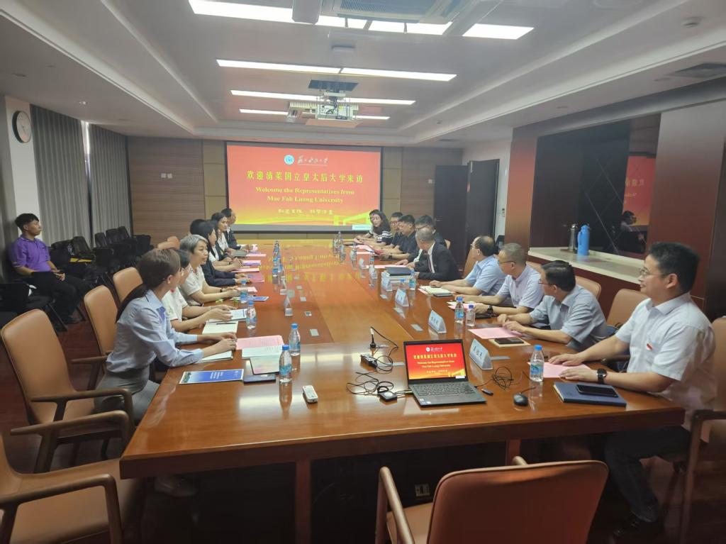 8月21日下午,泰国皇太后大学代表团一行7人访问我校。我校副校长李勇及相关人员接待并参与会谈。
