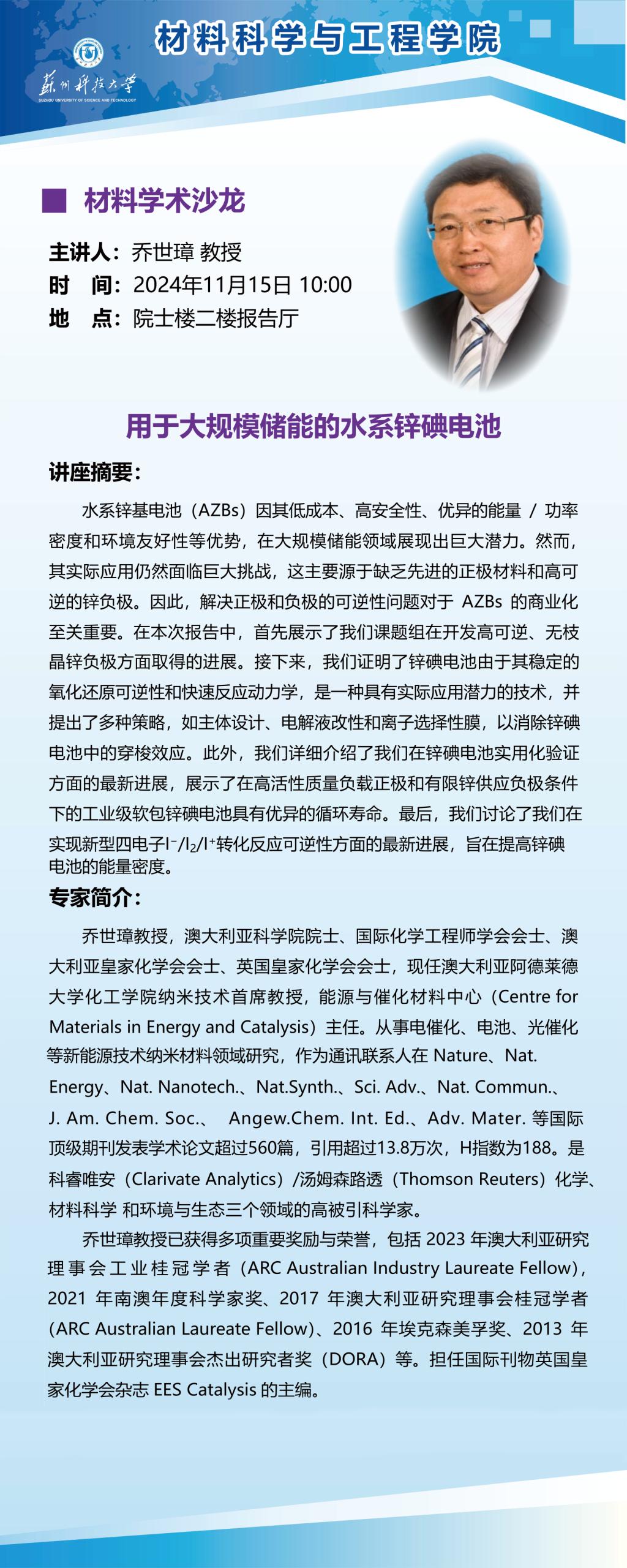 材料学术沙龙:用于大规模储能的水系锌碘电池