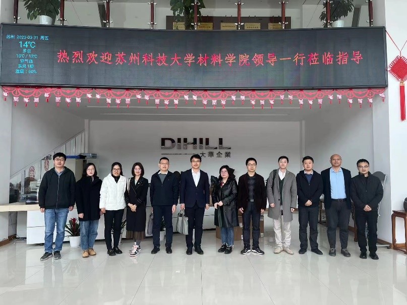 在调研大华集团过程中,集团副总经理周丽卉、集团子公司苏州通大新能源科技有限公司副总经理任政介绍了企业分布式光伏电站方面的应用,并提出了在钠离子电池电芯以及锂电池前端制成过程方面的技术需求。郭春显院长认为,双方可以在电池关键材料与技术研究及应用方面开展合作交流,并希望通过校企联合,推动产教融合,政产学研用一体化建设。