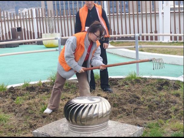 午后的庭院里,身着橙色马甲的志愿者们手持锄头、小铲,与护理院长辈们一同投入劳作。大家分工协作,挥锄翻松板结的泥土,用铲子将土块敲碎整平;蹲身清理杂草枯枝,不放过边角缝隙;栽种环节中,扶苗、培土、压实、浇水,每个步骤有条不紊。经过共同努力,原本沉寂的庭院里,新翻的泥土整齐平整,一排排花苗迎风挺立。