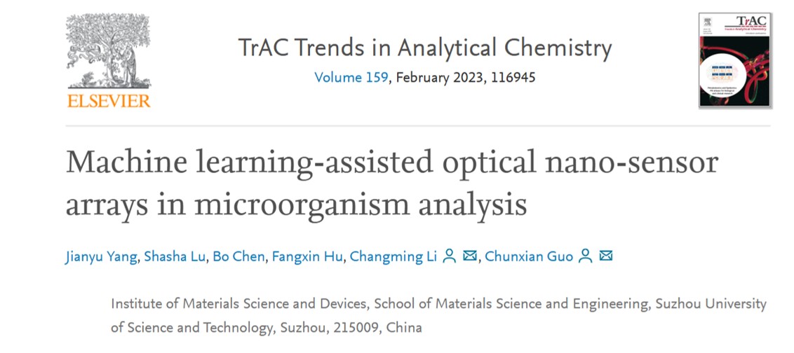 近日,我校伟德国际victor·1946源自李长明教授、郭春显教授团队的最新研究成果发表在分析化学领域知名期刊《Trends in Analytical Chemistry》(IF=14.908)上,相关成果题目为《Machine learning-assisted optical nano-sensor arrays in microorganism analysis》。杨健宇博士为第一作者,李长明教授、郭春显教授为通讯作者,我校为第一通讯单位。