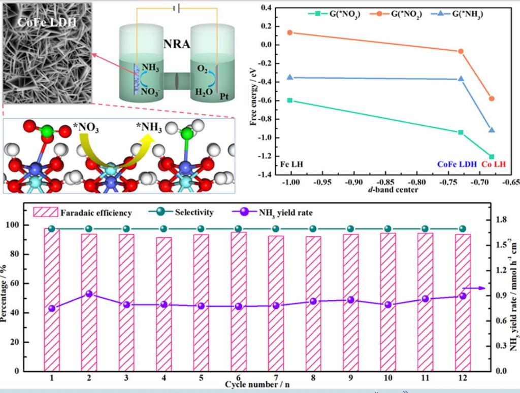 2022年1月,电化学知名期刊Chemical Engineering Journal发表了该团队的最新研究工作,相关成果题目为“Active sites-rich layered double hydroxide for nitrate-to-ammonia production with high selectivity and stability”,本工作首次证明CoFe LDH是一种新型的NO3-电催化还原催化剂,具有优异的活性和长效耐用性,为制备NO3-电催化还原非贵金属基催化剂提供设计思路,从而使未来获得先进廉价NO3-电催化还原催化剂成为可能。郭春显教授和李长明教授为通讯作者,杜沣博士为第一作者,成果被系列媒体包括“科学材料站”等报道。
