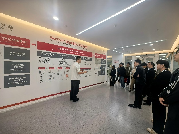 蒋大成介绍了企业在突破技术垄断、推动材料和生物科技创新方面的探索实践,分享了益生菌等前沿技术在生命健康等领域的广泛应用与前景。在研发中心及成果展示区,师生们通过实地观摩并与企业专家深入交流,直观了解益生菌研发的关键技术环节。在座谈会上,微专业师生与企业专家围绕前沿技术动态与人才培养需求等问题开展深入探讨。