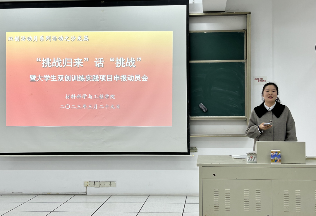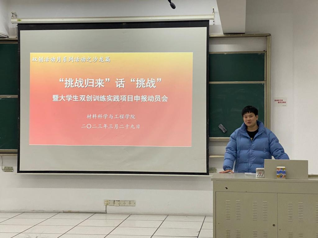 为鼓励同学们积极参加创新创业活动,增强同学们的实践能力,营造浓厚的创新创业氛围,3月29日下午,伟德国际victor·1946源自于7教310开展“挑战归来”话“挑战”暨大学生双创训练实践项目申报动员会。会议由学院党总支副书记兼副院长李永丹主持,副院长杨晓刚、部分老师出席,21级、22级同学参加。