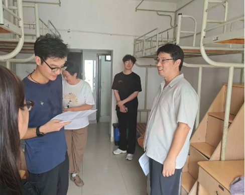 学院副院长杨晓刚和叶常青细致询问了新生的住宿适应情况,并就大学生活规划、安全意识、人际交往等方面提出建议,叮嘱同学们要互帮互助,共同营造积极向上、和谐融洽的宿舍氛围,为今后的学习生活打下良好基础。