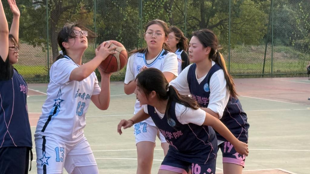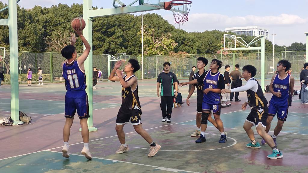 篮球比赛中,双方队员你追我赶、拼抢积极,比分交替上升。女篮以34:30的比分力克对手,荣获总决赛季军,男篮虽遗憾告负,但表现可圈可点,展现了材料学子顽强拼搏的竞技风采。