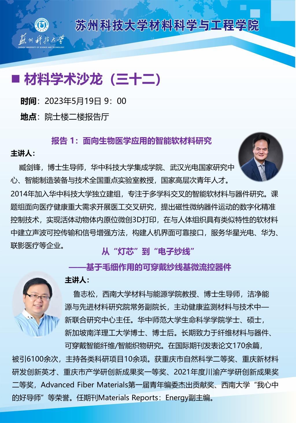 材料学术沙龙三十二:面向生物医学应用的智能软材料研究