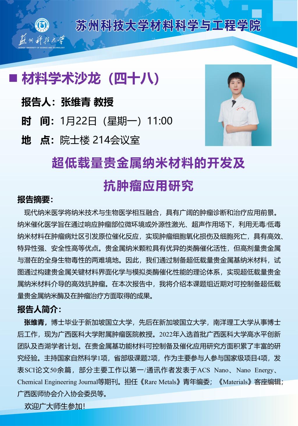 材料学术沙龙四十八:超低载量贵金属纳米材料的开发及抗肿瘤应用研究