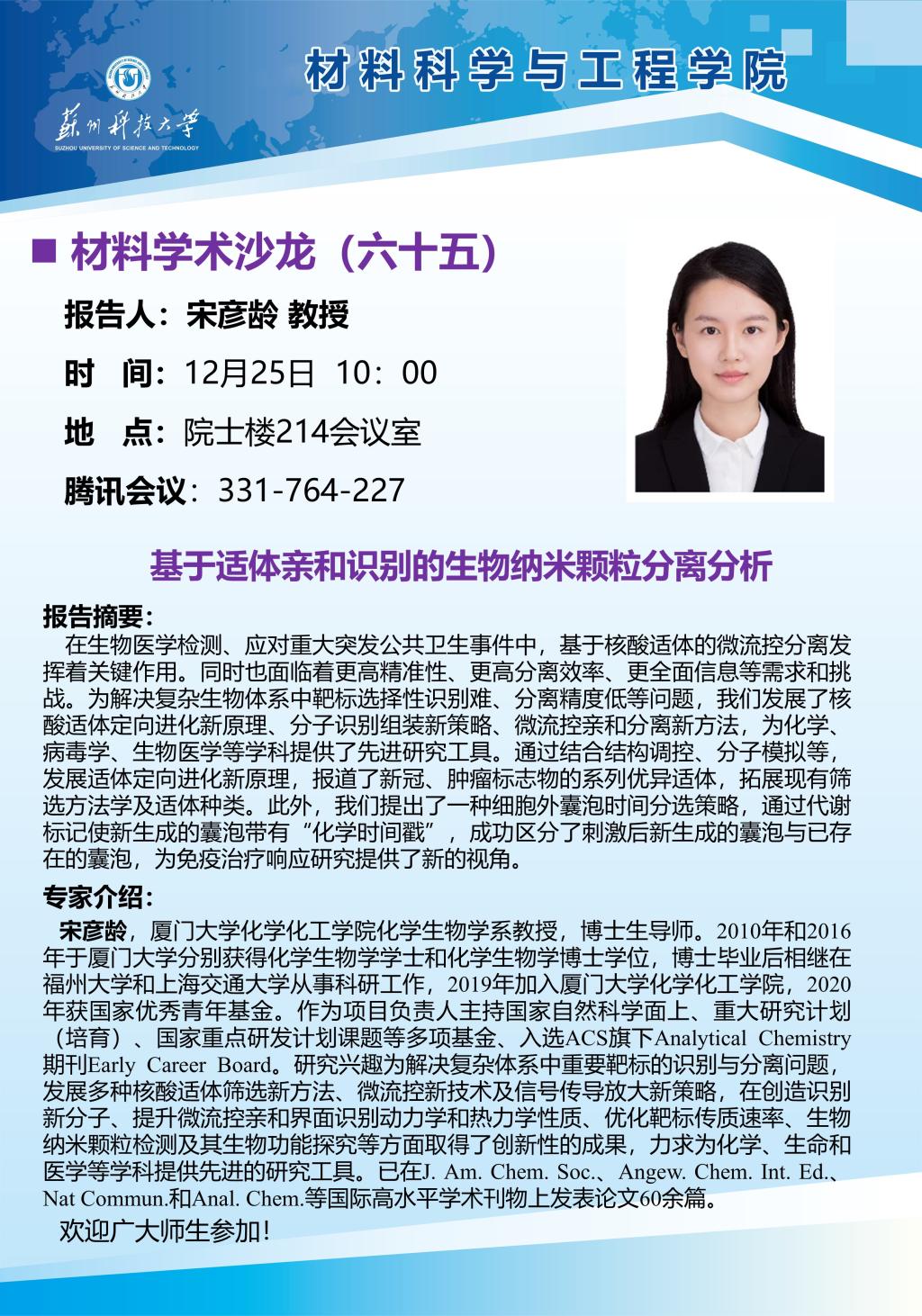 材料学术沙龙六十五:基于适体亲和识别的生物纳米颗粒分离分析