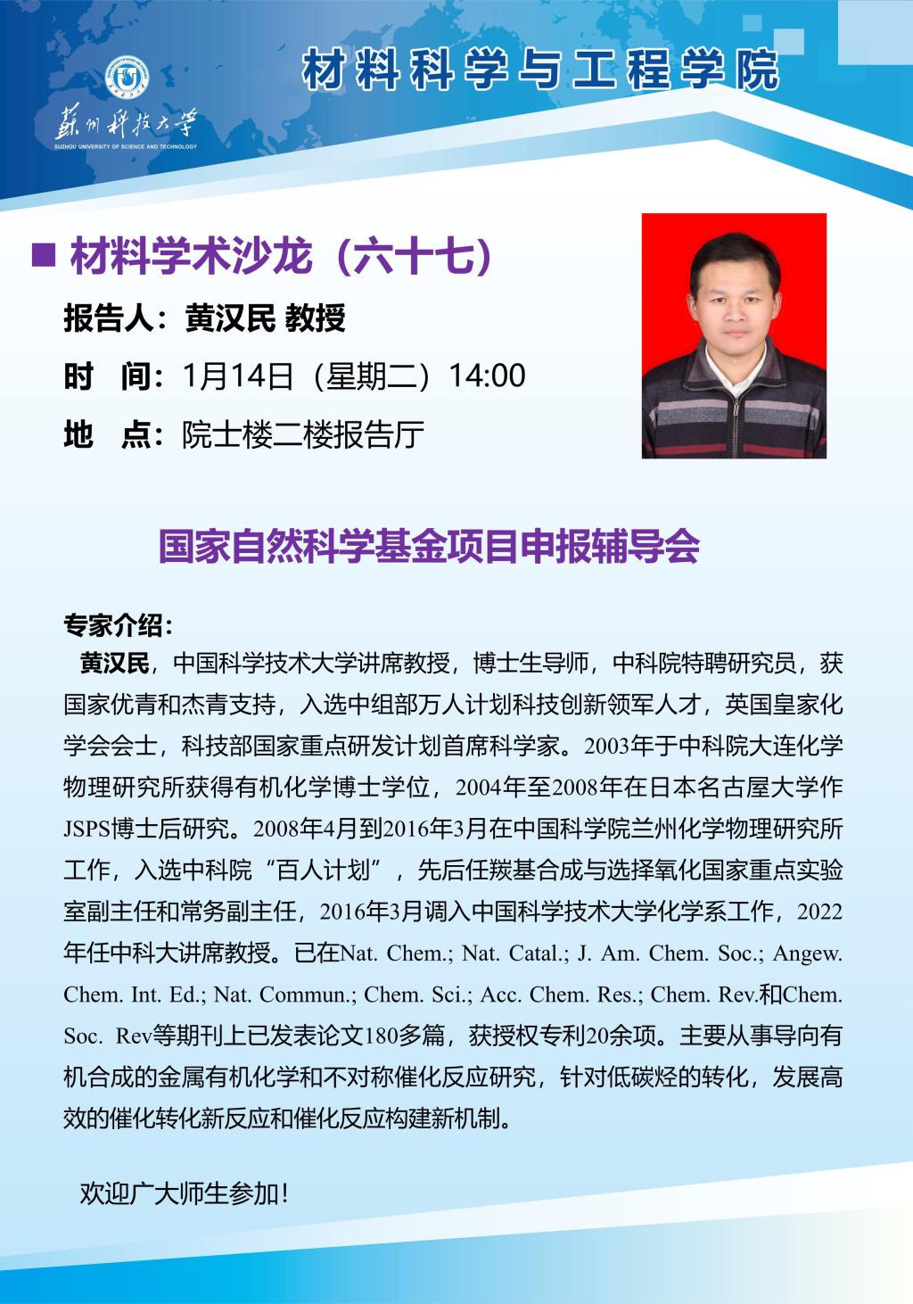 材料学术沙龙六十七:国家自然科学基金项目申报辅导会