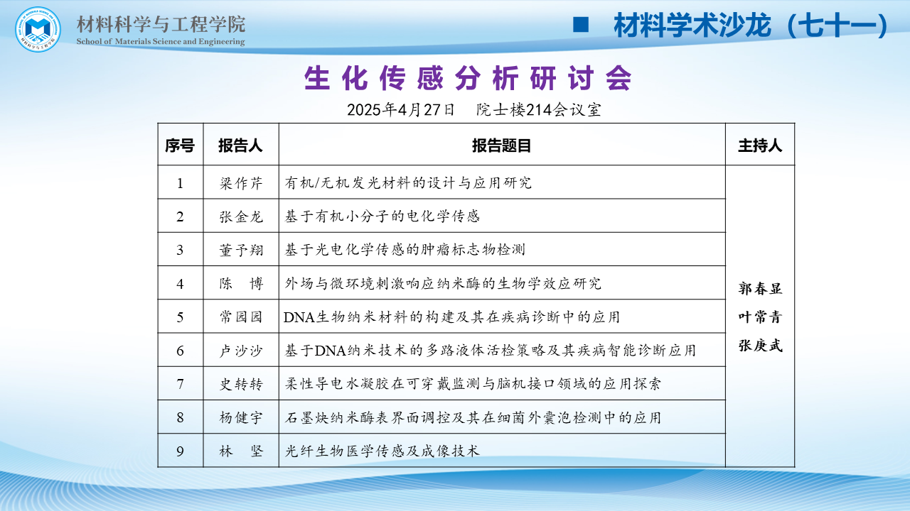 材料学术沙龙七十一:生化传感分析研讨会