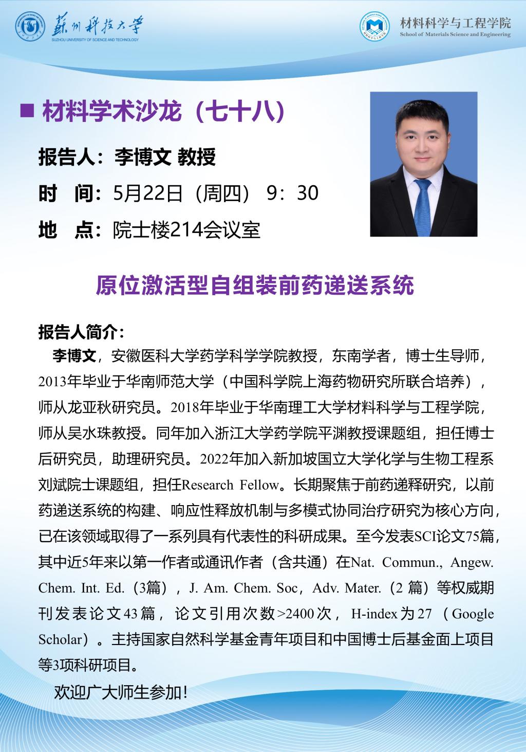 上一条:材料学术沙龙七十九:生物响应性药物递释系统用于肿瘤和糖尿病治疗