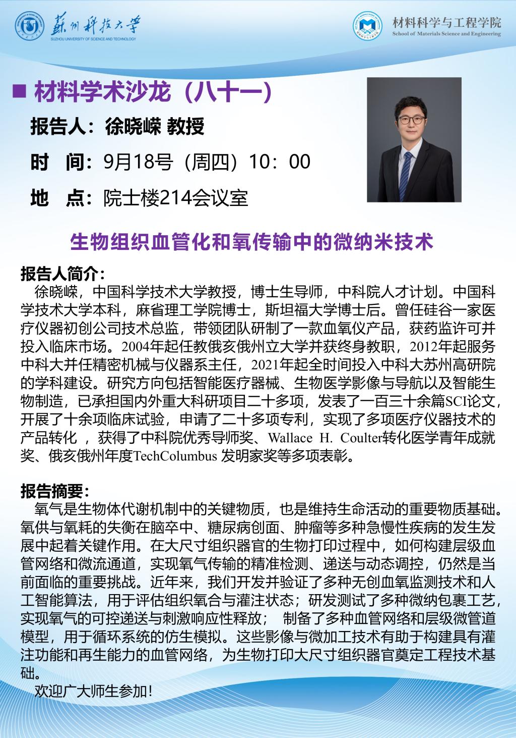 材料学术沙龙八十一:生物组织血管化和氧传输中的微纳米技术