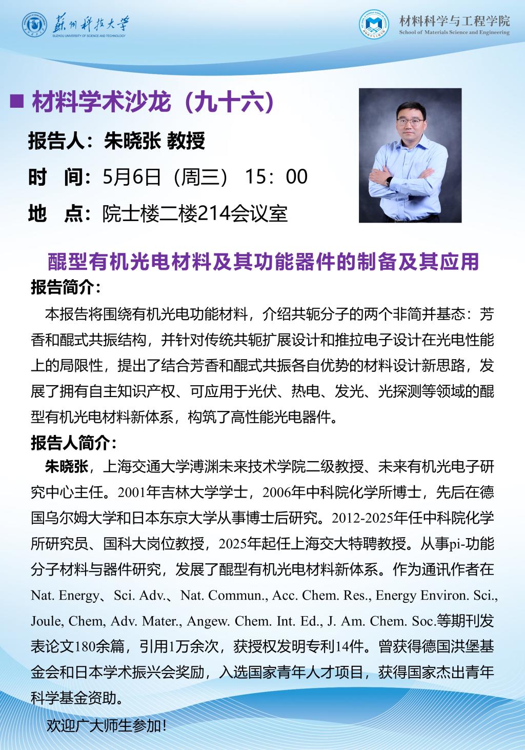 材料学术沙龙九十六:醌型有机光电材料及其功能器件的制备及其应用