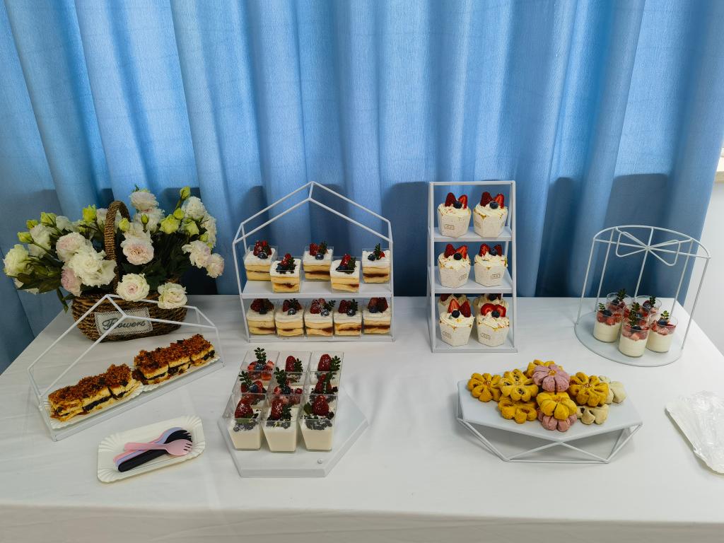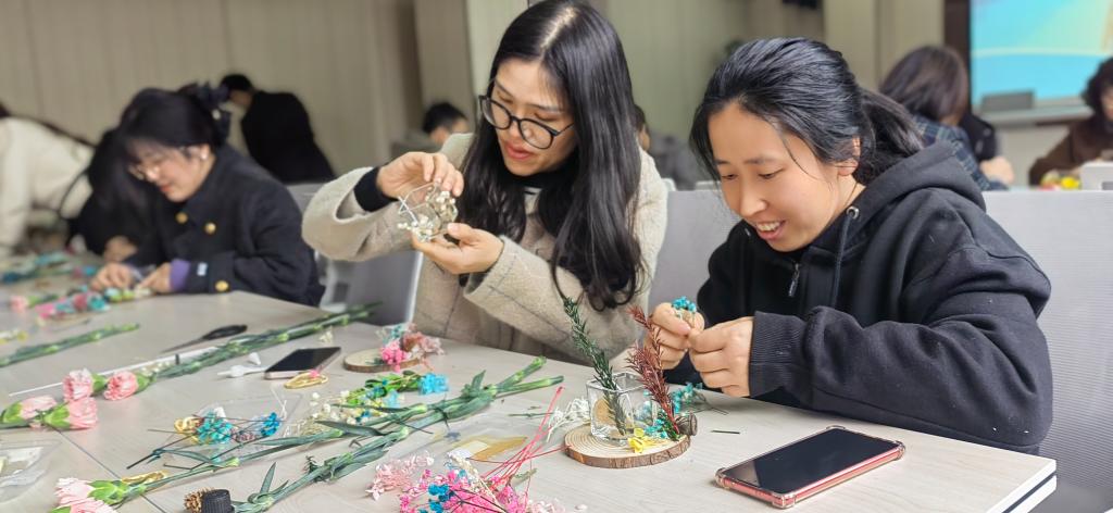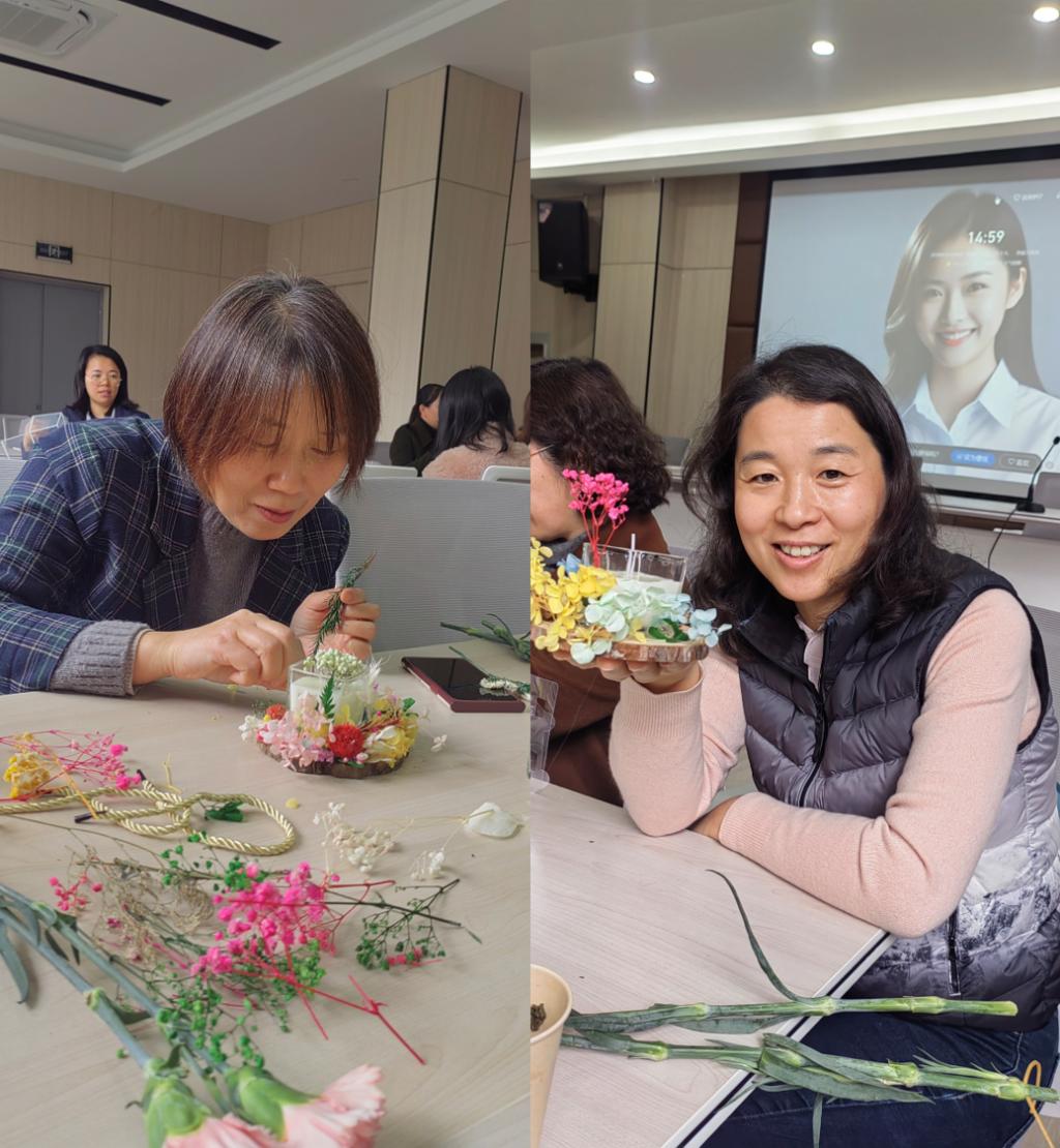 活动当天,学院为参与的女教职工们准备了充足的制作材料和工具,并邀请了专业的手工老师进行现场指导。在温馨和谐的氛围中,女教职工们展现出了浓厚的兴趣和极高的参与热情。女教工一边畅聊生活趣事,一边手工制作乌米热奶宝裱花和香薰蜡烛,并现场享用茶点,气氛欢乐轻松。