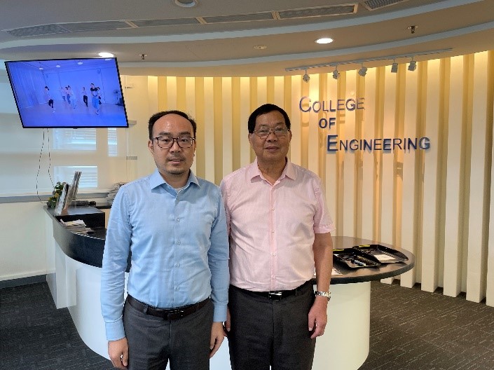 图3 与南洋理工大学工学院副院长蒲侃裔 (Pu Kanyi)教授会见讨论研究合作并合影