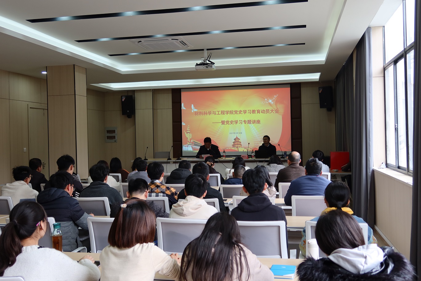 3月18日下午,伟德国际victor·1946源自召开党史学习教育动员大会暨党史学习教育专题讲座,深入学习贯彻习近平总书记在党史学习教育动员大会上的重要讲话精神,认真贯彻落实中央、省委和校党委统一部署要求。肖科学书记主持动员大会并作了动员讲话,马克思主义学院姚新立博士受邀做了主题为《学党史 悟思想 办实事 开新局》的讲座,全体党员和入党积极分子参加了会议。