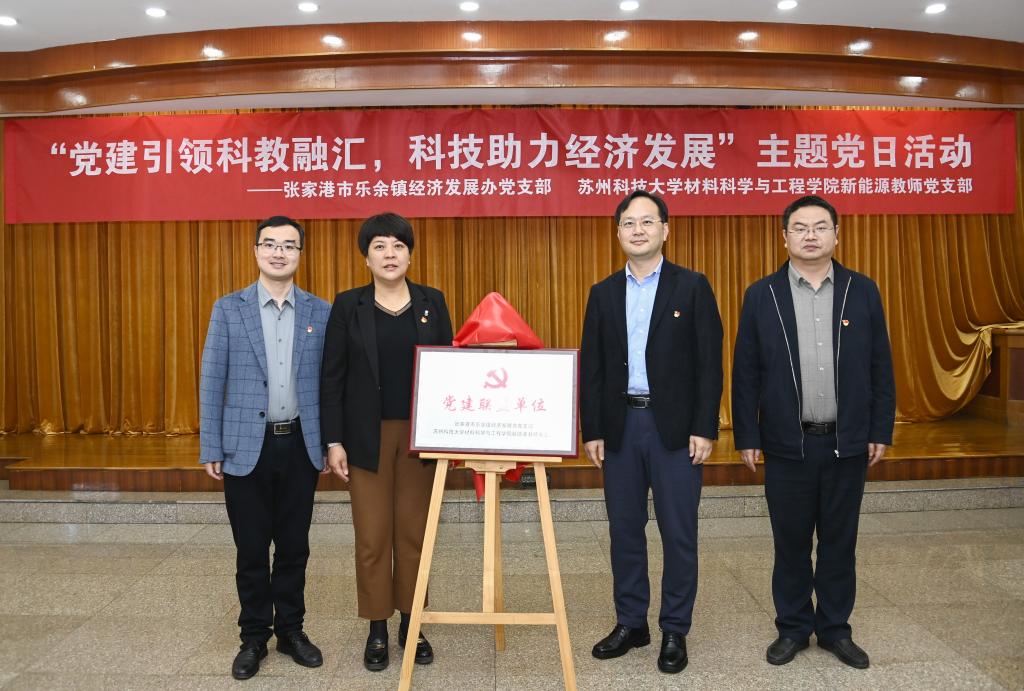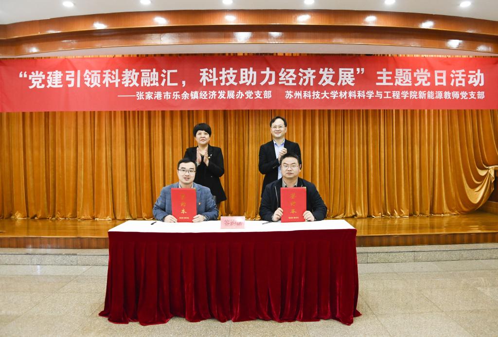 为深入贯彻落实党的二十届三中全会精神,发挥党建引领作用,推动学院与地方政府的深度合作,11月6日,bv1946伟德新能源教师党支部与张家港市乐余镇经济发展办党支部在张家港市乐余镇人民政府举办党建共建签约仪式暨“党建引领科教融汇、科技助力经济发展”主题党日活动。bv1946伟德党委书记和洁、党委副书记兼副院长李永丹、副院长叶常青、张家港市乐余镇党委书记周晓成、副镇长闻忠贤及双方党员参加了此次活动。